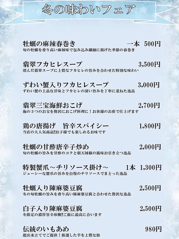 今だけ!冬の味わいフェア開催中!この時期にしか食べられない旬のお料理をぜひお楽しみ下さい♪