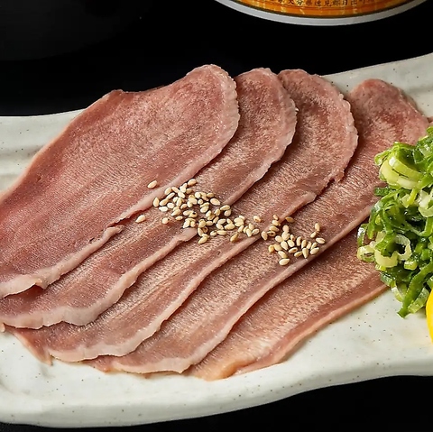皮付きでとってもジューシーな豚タンです!トッピングのネギは『ネギ包みタン』と同じ味付けネギを使用。噛むほどに味わいが深まる逸品です◎