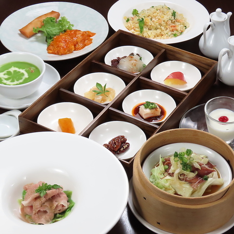 六種冷菜からフカヒレスープ・茶碗蒸し仕立て・三種類の海老料理・XO醤炒飯・選べるデザートなど多彩な中華料理に舌鼓中華をお召し上がりいただけます♪個室ご希望の場合は利用料3,000円(税込)頂戴いたします。