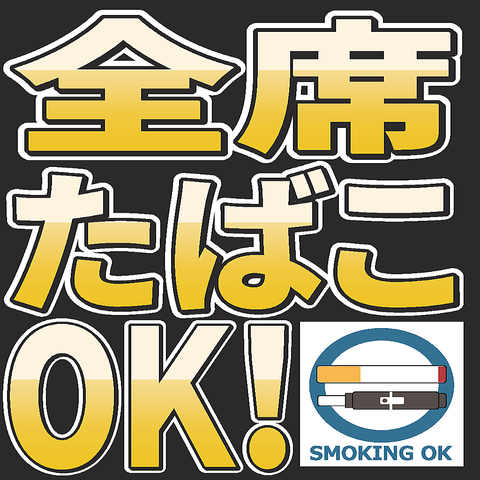 全席喫煙可能!少人数から大人数まで個室でご対応可能です!
