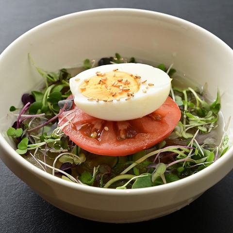 当店では、10種類以上のマイクロハーブと一緒にお肉を楽しむスタイルでご提供しています。栽培からこだわって育てられたこの野菜は栄養価も高く、食材としての価値が高いものばかり。こだわりのお肉とマイクロハーブとの絶妙なマッチングをお楽しみください。