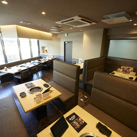 広々とした店内のソファ席は、席間隔も広く、ゆったりくつろいで焼肉を楽しめます。
