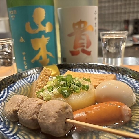 おでんと日本酒、鉄板料理が味わえる大人の隠れ家。こだわり出汁で煮込んだおでんと、自慢の鉄板料理をぜひ