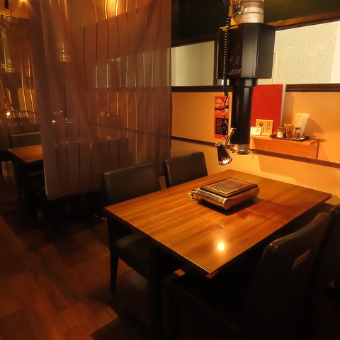 【カウンター】二人だけの空間を楽しめるカウンター席はデートにおすすめ。最大14名ご案内可能。朝6時まで営業しておりますので、締め焼肉やしっぽり飲みにもぴったり