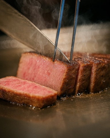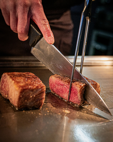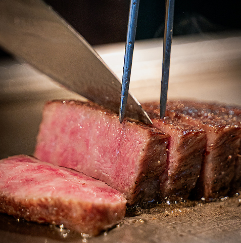 A5ランクの美瑛和牛のヒレを鉄板で豪快に焼き上げます。美瑛和牛特有の脂の甘みをご堪能ください。