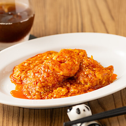 人気のエビチリ!大ぶりの海老を使っています。 辛さ:★
