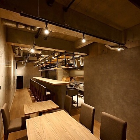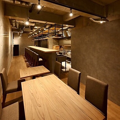 駅近で集まりやすく、一歩足を踏み入れれば洗練された都会的な空間が広がります♪木の質感が心地よいテーブル席や、調理のライブ感が五感を刺激するオープンキッチンを完備★コンクリート調の壁が落ち着いた雰囲気を演出し、食通の方との会食や10名様前後の宴会にも最適です◎大人の隠れ家のような空間で、上質なひとときをどうぞ♪