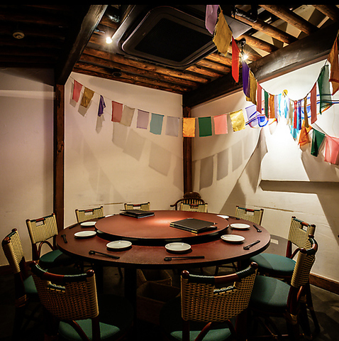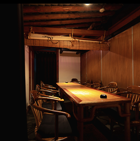 中国風の趣ある空間で、郷土料理をご堪能いただけます。落ち着いた照明と木の温もりが融合した、ゆったりと過ごせる一室です。