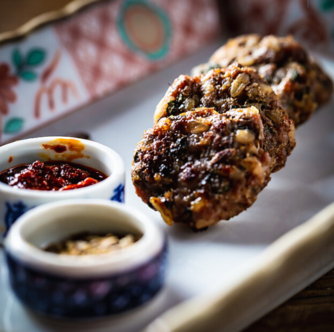 ・姫サザエのニンニク醤油漬け・枝付き枝豆の紹興酒漬け・トウモロコシのシェンダン天ぷら・鰻と肝の南香風串焼き・色々モツの白湯スープ・スイカのピクルス・旬の海鮮 雲南ハーブソース※季節、当日の仕入れ状況により変更となります※2名様から、1名様×\1320
