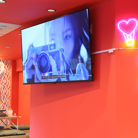 店内には大型スクリーンを設置しており、韓国アイドルの映像を常時上映。本場さながらの雰囲気の中でお食事をお楽しみいただけます。また、店内には“映えスポット”も!可愛いLEDライトがあちこちに散りばめられているので、ご友人との思い出に写真撮影もぜひお楽しみください♪