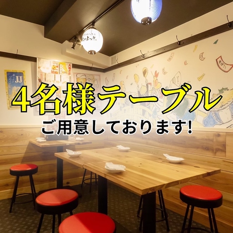 【4名様~OK】少人数からでもご利用可能なテーブル席もご用意!距離がぐっと縮まる人気のお席になっております♪#烏丸御池#四条烏丸#京都#居酒屋#飲み放題#串カツ#居酒屋