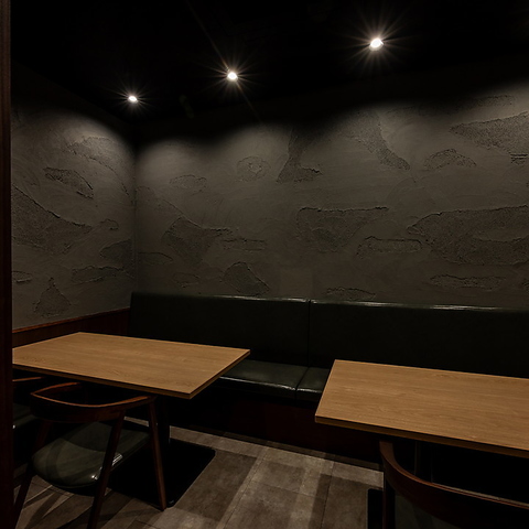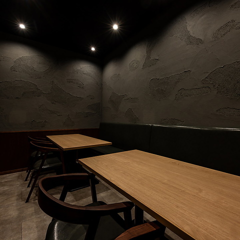 【個室4名~8名様まで】少人数でのご宴会、接待などにも気兼ねなくお使いいただける個室席も完備。洋とモダンが調和するグレーを基調とした大人な雰囲気で世代を問わず人気のお席です。