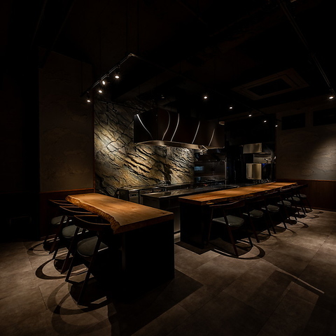 ライブ感満載のカウンター席で鉄板焼きが楽しめるお店。デートやお祝い事・接待・会食等様々なシーンでご利用いただけます。