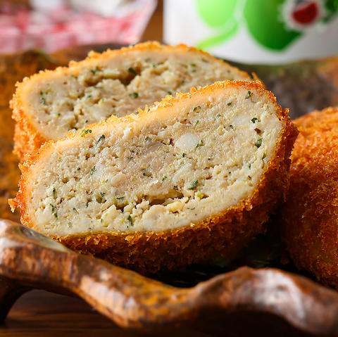 愛媛県宇和島市で飼育された、ブランド無薬豚「あい健康豚」を使用した『メンチカツ』。肉質は、柔らかくジューシーで、旨みが凝縮されています。外はサクサク、中はふんわりとした食感が堪らない一品。お酒はもちろん、ご飯との相性も抜群です。是非ご賞味ください!