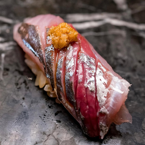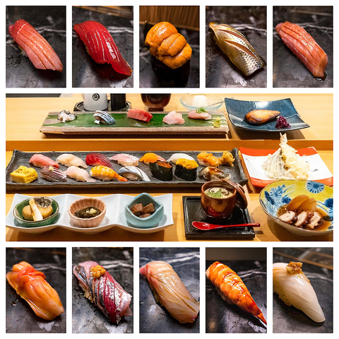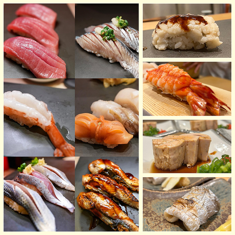全国各地から直送の旬の極上鮮魚を丁寧に仕込み一番美味しい状態で握ります。石川県産の特別栽培米にこだわりの熟成赤酢のシャリで魚の美味しさが引き立ちます