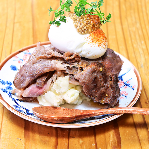 和牛とポテサラを一度に味わえる♪当店ならではの逸品!