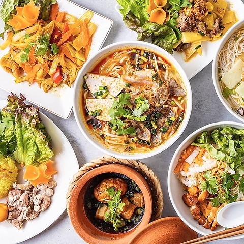 人気の生春巻きやサラダ、揚げ春巻きなど、ベトナムの定番料理を網羅。メインには牛出汁の旨みが染み渡る本格フォーをご用意しました。シンハービールやカクテルも選べる飲み放題付きで、女子会や宴会にも最適。パクチーの香りと共に、異国情緒あふれる賑やかなひとときを心ゆくまでお楽しみください。