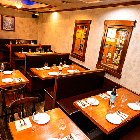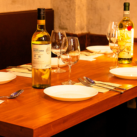 少人数での食事はもちろん、グループ利用や貸切にも対応できる使い勝手の良い店内です。テーブル同士の間隔にも余裕があり、周囲を気にせず過ごせるのも魅力。落ち着いた雰囲気の中でありながら堅苦しさはなく、集まりの目的を選びません。ゆったりとした時間を大切にしたい方におすすめです。