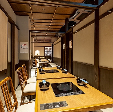【雰囲気】 天神南駅・櫛田神社前駅より徒歩約5分に佇む西中洲店がオープン。某有名デザイナーが手掛けた店内は雰囲気抜群。福岡最上級のもつ鍋とおもてなしをご堪能ください。【博多もつ鍋 前田屋】