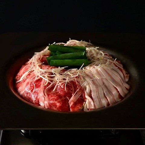 焼肉と鍋が1つになった新しいスタイルのメニューです★特注の専用鍋を使用し、お肉の旨味がたっぷりと溶け込んだ病みつきになる味わいです。〆は玉子雑炊、沖縄そば、チーズリゾットからお選びいただけます♪