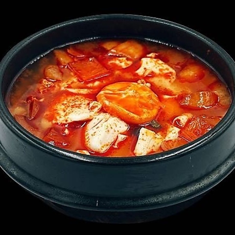 ピリッとした辛さと豊かな旨味のチゲ。新鮮な豆腐と野菜がたっぷり入っており、栄養満点!さらに、海鮮や肉を加えることで、深い味わいを楽しめます。熱々の状態で提供しており、食べる前から期待感を高めてくれます。ご飯と一緒に食べれば、満足感も倍増!友人や家族と一緒にシェアしながら、楽しいひとときを♪
