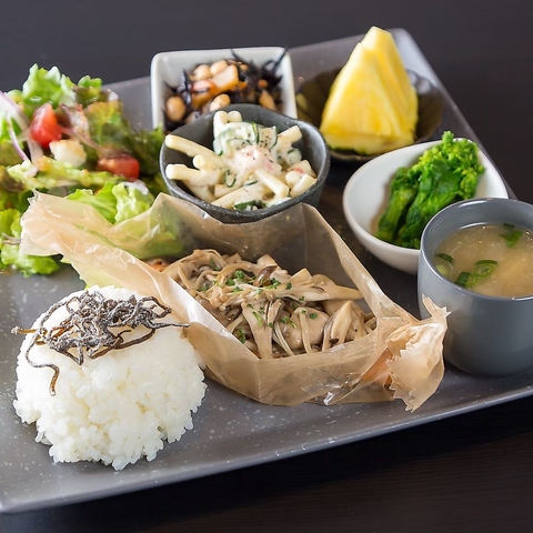 (ワンプレート1800円)リピート率が高いランチは豊富なメニューが魅力。素朴で飽きの来ない美味しさを