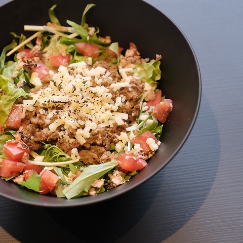 タコスの具材(ミンチ・レタス・トマト・チーズ)をライスの上に乗せた沖縄ソウルフード ※雑穀米に変更+100円(税込) ※ご飯大盛り+100円(税込) ※チーズ増し+200円(税込)