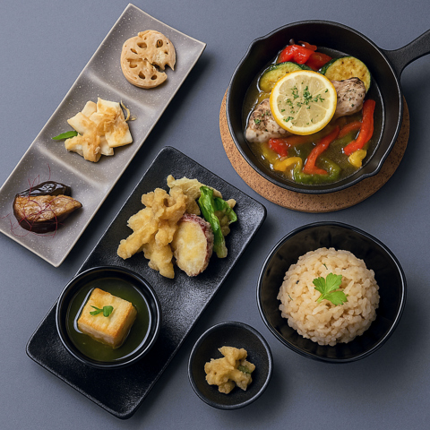 彩り豊かな和風ワンプレートに、季節のドルチェとドリンクが付いた女子会にぴったりなランチコース。ゆったり過ごしたいランチタイムにおすすめです♪