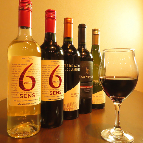 グラスワインはもちろん、ボトルワインも4000円からご注文いただけます。ワインを飲み慣れていない方にも