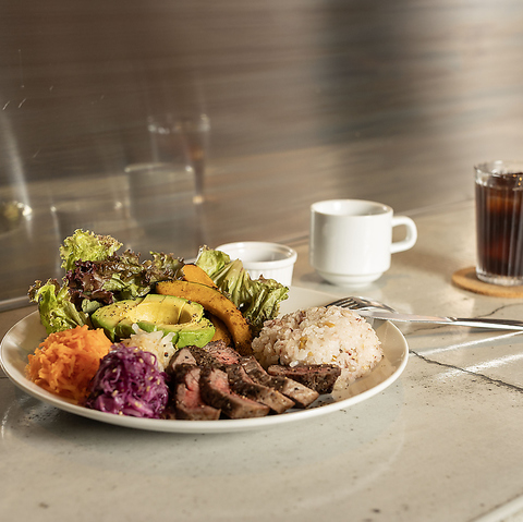 忙しい合間だからこそ、食事に集中する「健康的な休憩」を。カウンター席なら、お一人様でもスピーディーに栄養バランス抜群のプレートを楽しめます。国産鶏ムネ肉やたっぷりの野菜が、午後への活力をチャージ。短時間でも心から満足できる、上質なランチタイムをどうぞ。