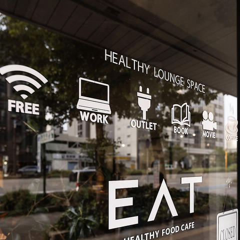 スタイリッシュな外観が目印の当店では、メニューのテイクアウトが可能です。お忙しい日でも、ご自宅やオフィスで本格的なヘルシーメニューを気軽にお楽しみいただけます。店内にはFREE Wi-Fiや電源コンセントも完備されており、商品をお待ちの間もスマートに過ごせる快適な環境が整っています。