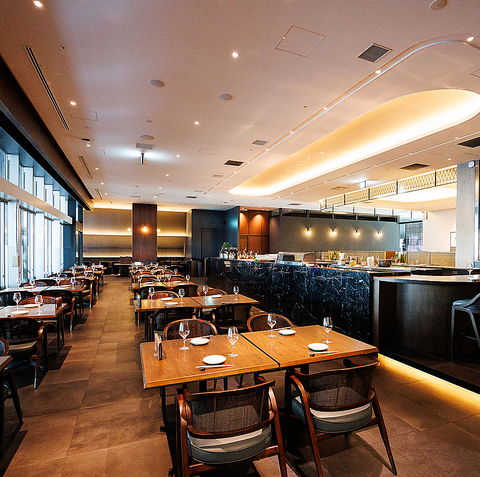 【デートにピッタリなカウンター席】店内中央のカウンター席はお席の間隔をゆったりとり、プライベートなお食事やデートにもおすすめ。ライブ感を間近で見ながらお食事をお愉しみいただける特等席です。◇新宿駅 西武新宿駅 歌舞伎町タワー 和食 寿司 肉 ランチブッフェ ご宴会 デート 記念日 飲み会◇