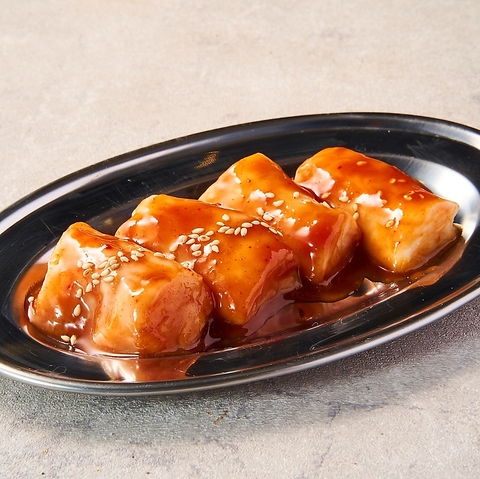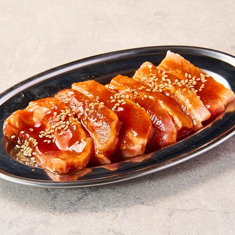 タレの味が肉にしっかりと染み込んでいるので、焼いてそのままお召し上がりいただけます!柔らかくなるまで漬けているのでとてもジューシーなお肉です。テッパンメニューのため、外せません!