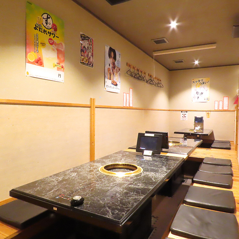 3~6名様までご利用いただける掘りごたつ席です。お子様連れでのご利用も大歓迎のゆったりとくつろげるお席です。ご家族での団欒のひとときを美味しい焼肉と共にお過ごしください。