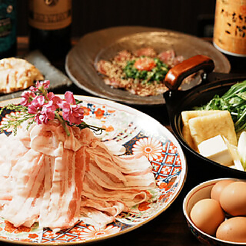 コースでは、河内鴨・出汁豚しゃぶしゃぶ・鶏水炊・r豚とろろ鍋の計4種類ご用意しております。皆様でシェアするのに最適なお鍋は年中お楽しみいただけます◎飲み放題付コースとしてご用意しておりますのでぜひご利用ください☆