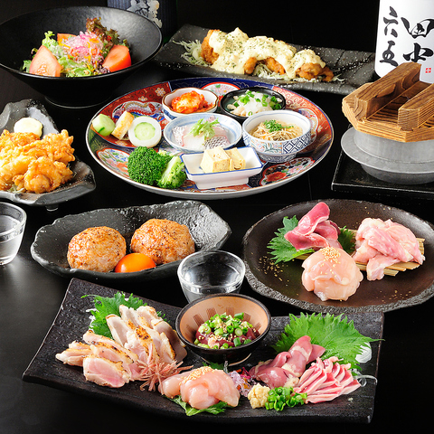 【2時間飲み放題付】めっちゃ鶏コース◆地鶏お造り盛り合わせや名物つくねなど全9品4000円(税込)