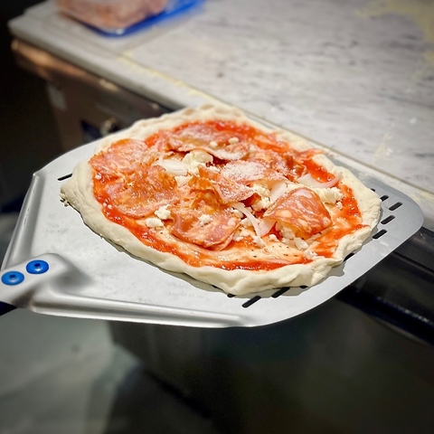 生地は厳選した小麦粉をオリジナルブレンドし、天然の酵母と塩のみを使用。職人の「目で」生地を管理し、職人の「手で」生地を延ばす。460℃の高温石窯で一気に焼き上げる本格ナポリピッツァ。