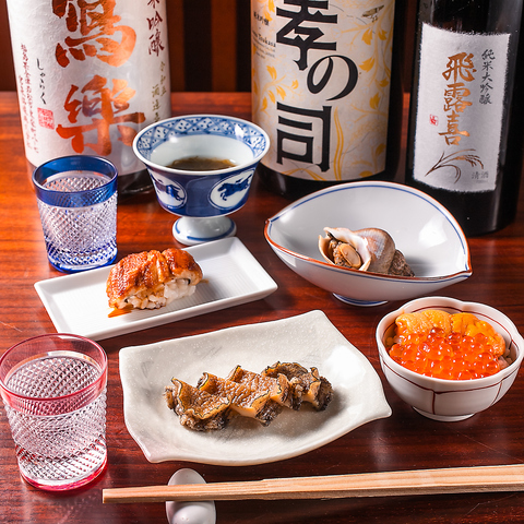 特別なひとときにふさわしい体験をしていただきたく、シチュエーションに合わせたお料理と器で心を込めておもてなしいたします。他では味わえない、健康を考えた「麦入りシャリ」の握り寿司をはじめ、その時季ごとの厳選した旬の食材をご用意。コースは、小鉢3~4品前後・握り10貫前後を中心にご提供いたします。