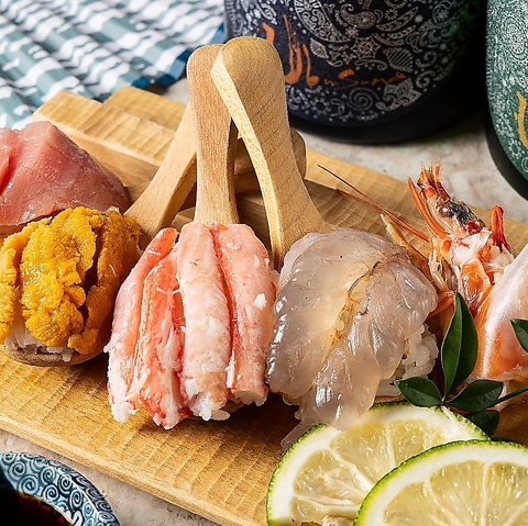 かつて自ら海に出ていた店主が毎日市場へ通い、その確かな目利きで納得した魚だけを厳選仕入れ。熊本天草の伊勢海老や長崎のウチワエビなど、他店を圧倒するネタの豊富さと鮮度が自慢です。美味しいものを知り尽くした店主が選ぶ博多の旬魚は、食通のゲストも唸らせます。大切な方を招く夜は、当店にお任せください。