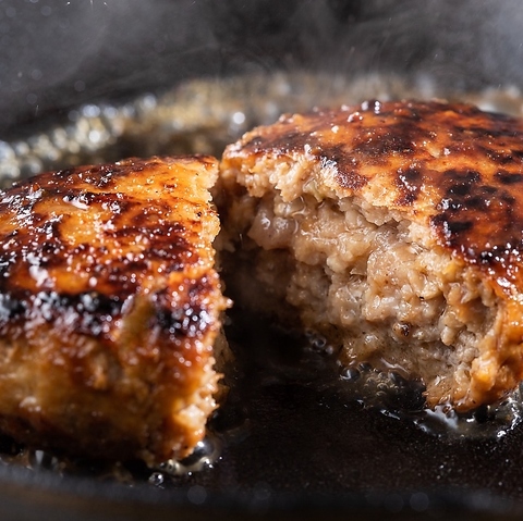 従来のハンバーグは、ステーキなどのメイン料理の余った肉や硬く扱い難いスネ肉など端肉を使って作るものでした。それでは旨味・食感共にそれ相応のものしかできません。しかし当店では、食を極めたシェフが美味しいハンバーグ作りの為だけに調達した原材料である肉やつなぎにこだわり理想的なバランスで1つ1つ作り上げております。