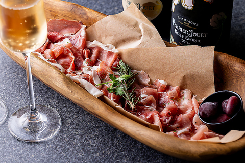 スペイン産ハモンセラーノとロースの盛り合わせ。