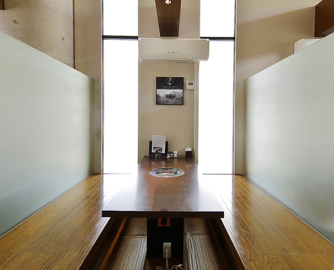 | テーブル | 4名様×4 | 4名席のご用意ございます。仕切りがあり広々とした空間なので、隣を気にせずお楽しみいただけます。 |