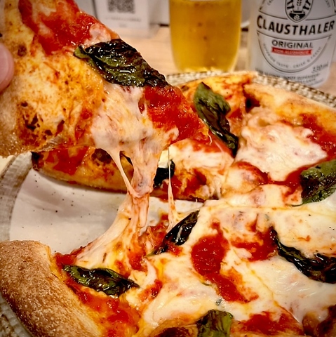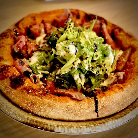 オーダーをいただいてから焼き上げるピザをご提供しています。生地には全粒粉を使用しており、栄養価が高く、香ばしい風味が楽しめるのが特徴です。一枚一枚丁寧に焼き上げることで、外はパリッと、中はモチッとした絶妙な食感に仕上げています。ピザはシェアするのにぴったりなサイズ。友人や家族と一緒にできたての美味しさをお楽しみください