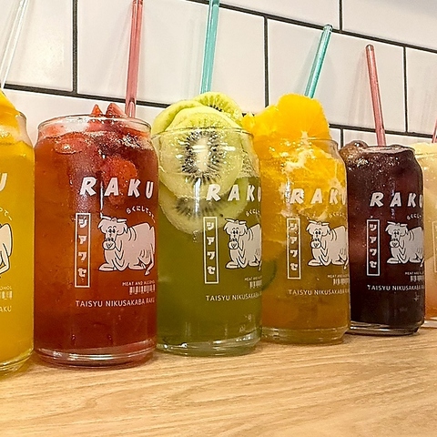 RAKUの「生果実サワー」は、オレンジ、キウイ、いちご、マンゴー等からお好きな果実を選んで味わえるドリンク!新鮮な果実を使ったドリンクは、フルーティーで爽やか。自分だけのオリジナルドリンクを作れるので、味わいも格別。さらに、ノンアルコールのバリエーションもご用意しているためどなたでも安心して楽しむことができます。