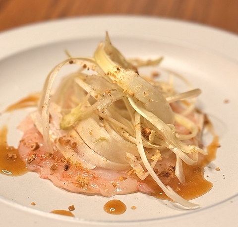 新鮮な青森県産の馬肉を使用したタルタル。繊細な甘みと濃厚な旨みが口の中でとろけ、ワインとの相性も抜群。シンプルながらも奥深い味わいを楽しめる逸品です。