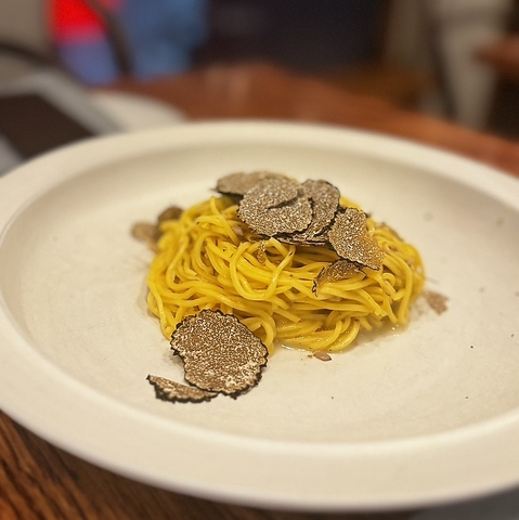 もっちりとしたカヴァデッリに、旨みたっぷりのラグーソースを絡め、旬のアスパラを添えた一品。肉のコクと野菜の爽やかさが絶妙に調和し、噛むほどに広がる豊かな風味を楽しめます。ワインとの相性も抜群です。