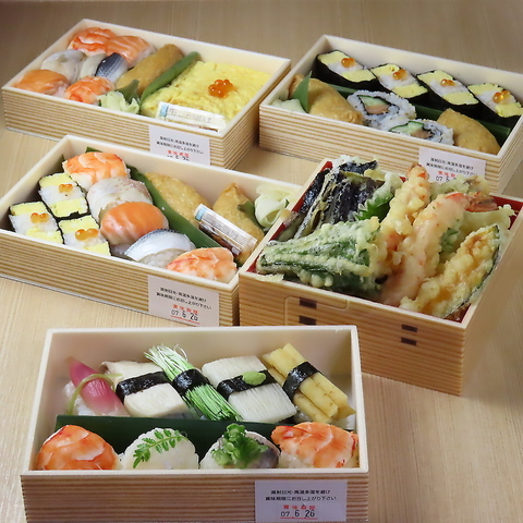 手まり寿司や稲荷寿司を彩り鮮やかに詰めた、壱の花1200円(税込)、弐の花1000円(税込)、参の花800円(税込)!