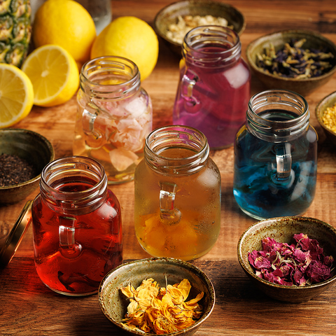 金木犀・金蓮花・薔薇など当店自家製のお茶ハイをお楽しみいただけます。横浜での普段使いの飲み会から接待やデート・合コンなど様々なシーンでご利用いただける完全個室のご用意も御座います。プライベート空間で大切な時間をお愉しみください。個室のお席のご予約はお電話でのお問い合わせのみとなっておりますのでお気軽にお電話ください。