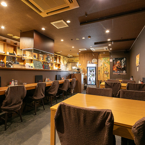 落ち着いた雰囲気の店内には、お一人様でも気軽に利用できるカウンター席から、ゆったりとくつろげるテーブル席までございます。総席数41席、最大30名様までのご宴会にも対応可能です。会社の同僚やご友人との飲み会など、様々なシーンでご利用いただけます!