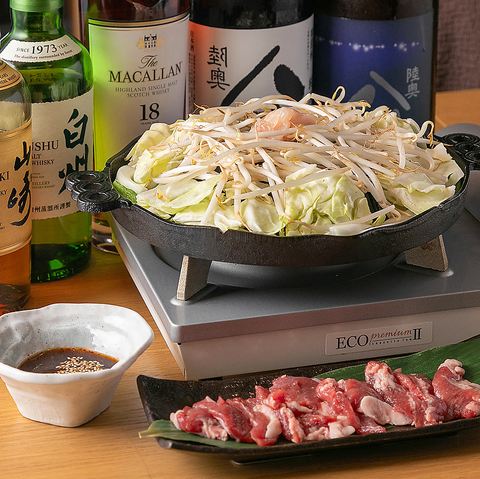 八炉厳選の生ラム使用【ジンギスカン】と、本場九州から取り寄せた牛もつを使用【もつ鍋】をご堪能ください
